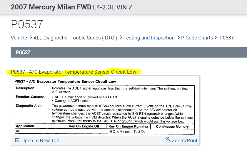 There isn't much room to work under the dash. I can only imagine what it was like. So, reading your last post, you indicated you replaced the ACET sensor and then the code for it appeared. Am I reading that correctly?