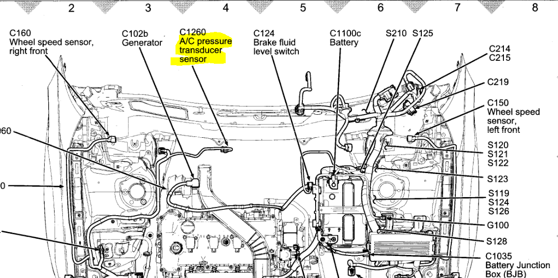 There is only one pressure sensor referred to as the ACP transducer sensor. It's near the firewall a little to the left of the center. Keep in mind, the code provided is related to the evaporator temperature sensor. It's behind the IP. See pic 2.