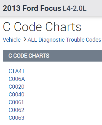 I got these trouble codes C101_00, C140_00, C121_00, C131_00, C151_00. I can find the P and U letter in front of the numbers and each one says a different problem. Thank you