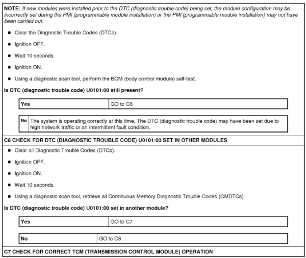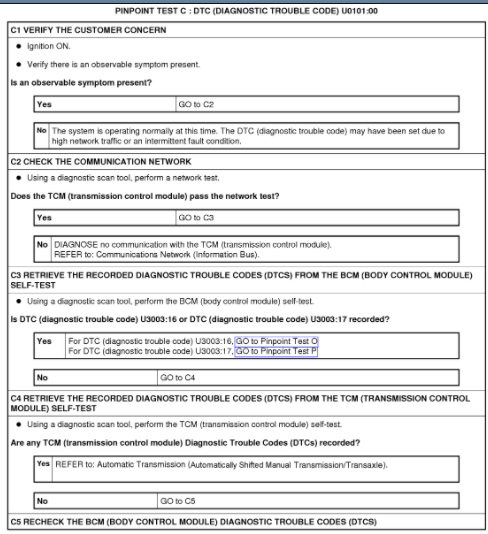 Those are all Ford codes that come up on the dash during test mode. They are U codes and are translated by replacing the C with U0U0101 - Lost communication with TCMU0121 - Lost communication with ABS moduleU0131 - Lost communication with steering moduleU0140 - Lost communication with BCMU0151 - Lost communication with Restraint Control module. I would say it's a CAN issue with one module locked up and preventing the other modules from using the line. A breakout box and scope would make it easy to find. Scan tool could be used but you would need to look at the modules on that line and find the missing one, then start unplugging them. I've attached diagnostic steps below. You will be using pinpoint test O and P on all of these and it is included as well. Hope this helps and thanks again for using 2CarPros.