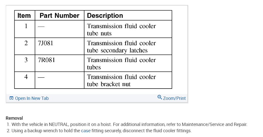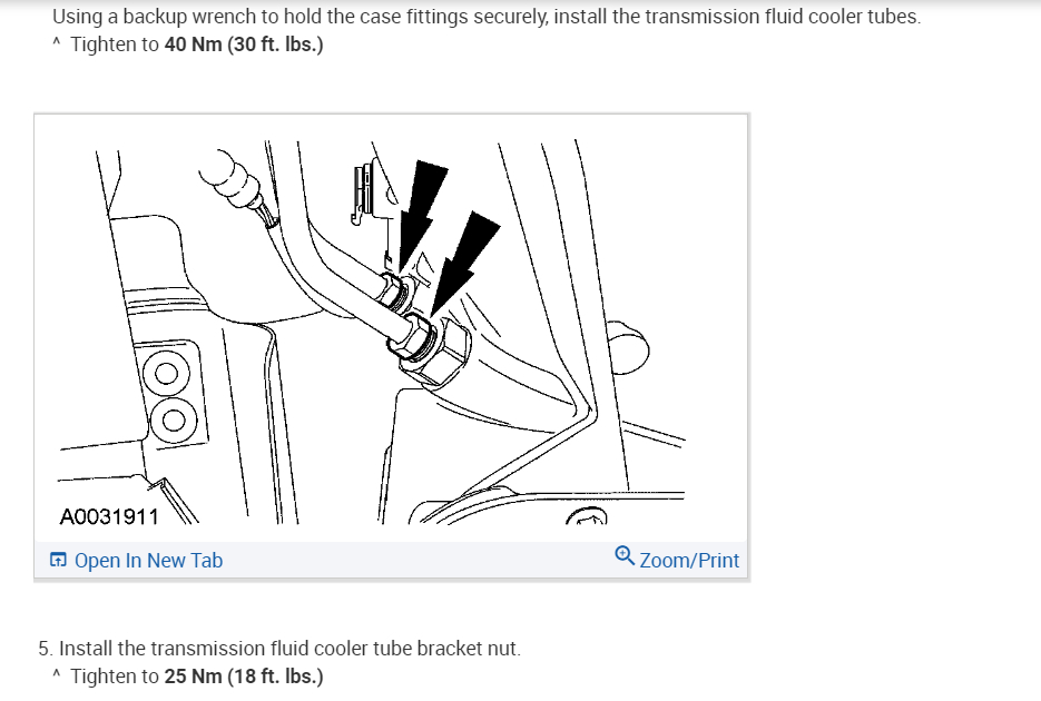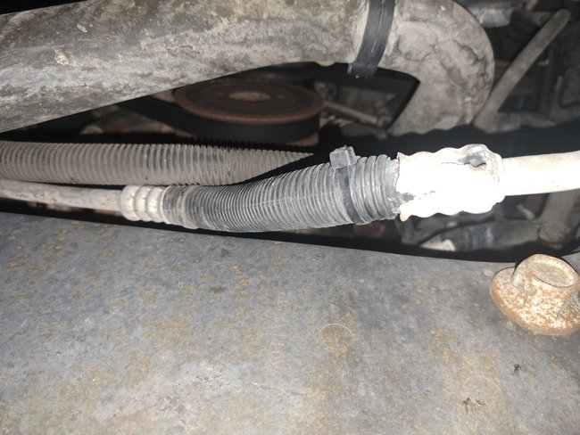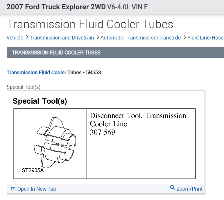 I have the vehicle listed above with the 4.0l SOHC and it comes with the 5R55S transmission. I have been looking to get a replacement transmission cooler line since the crimp fitting on the end of the line going into the left side of the radiator is cracked and I want to replace the line before it starts to leak. However, all the replacement lines I can find do not replace this particular line, replacements being for 6R60 transmissions. I am just wondering if anybody knows where I can look for a correct replacement, images provided. I could cut off the crimp and replace it with two hose clamps after flaring the end, but I would prefer an actual replacement as it's a high-pressure line. Photos provided you can see the cracked and corroded crimp on the second picture.