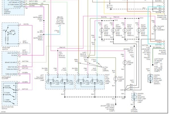 A snow bank ripped the wire harness apart under the truck bed near the rear bumper including seven way towing harness, tail/brake/reverse lights. Do you have a diagram showing wire colors and what they do?