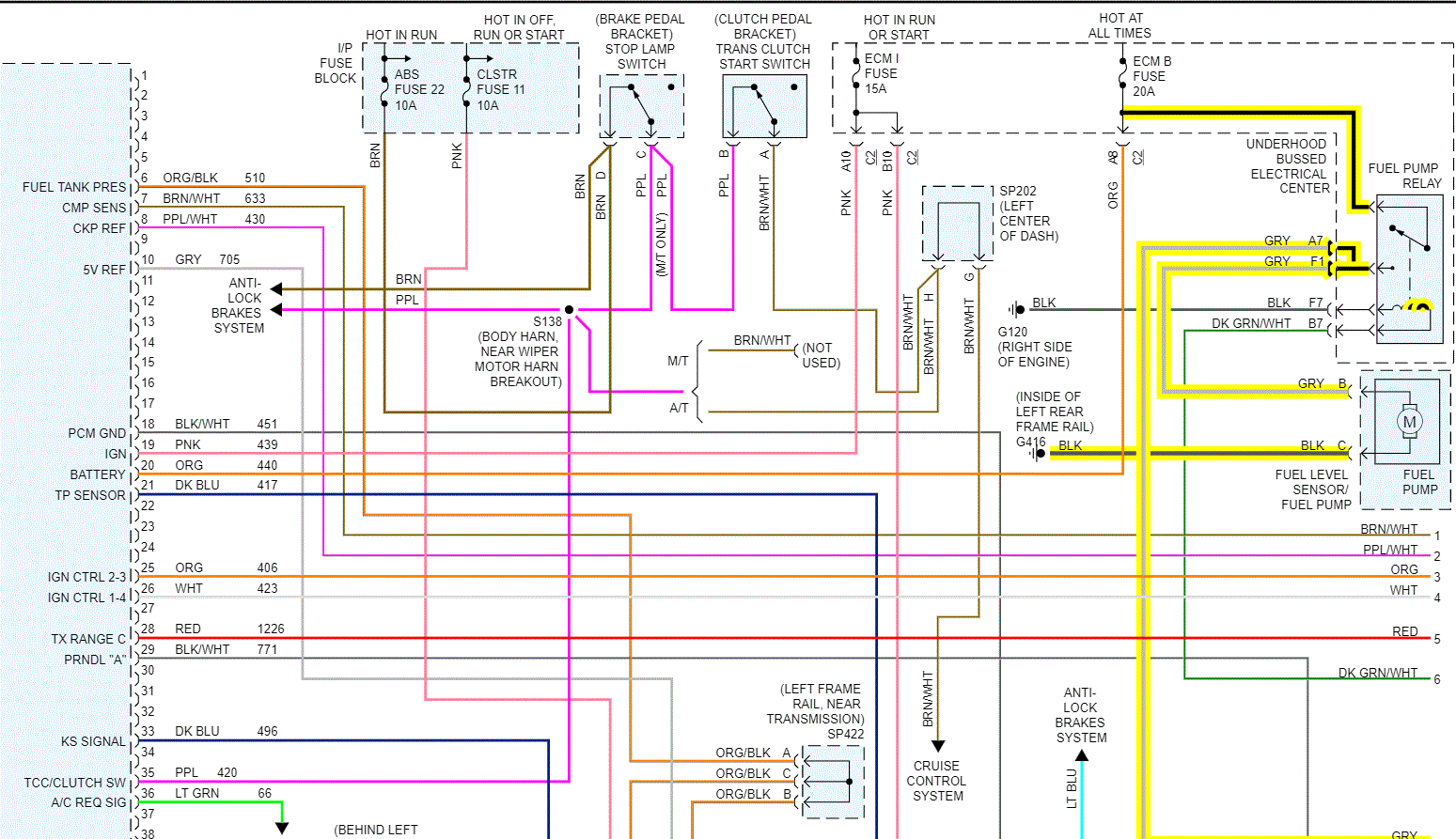 Okay, so I am not hearing the fuel pump when I key the ignition. I had a similar problem a few months back. Thinking it was the fuel pump I replaced it, the fuel filter and also the pressure regulator and fuel pump relay. I still had the same problem and replaced the control module. Eventually I found a wire was grounding out on the bracket for the oil fill tube and it has been running great since. I replaced the orifice tube and accumulator Sunday and recharged my A/C. drove to my fathers house and back about 35 miles and when I turned left to go up the hill to my house it suddenly just shut off and had to have it pulled to the house. It will run for a few seconds with starting fluid so I know it's fuel related but thinking electrical. Where should I start? I took out the bolt on the left rear frame and cleaned everything for the ground there when I first had this problem a few months ago.