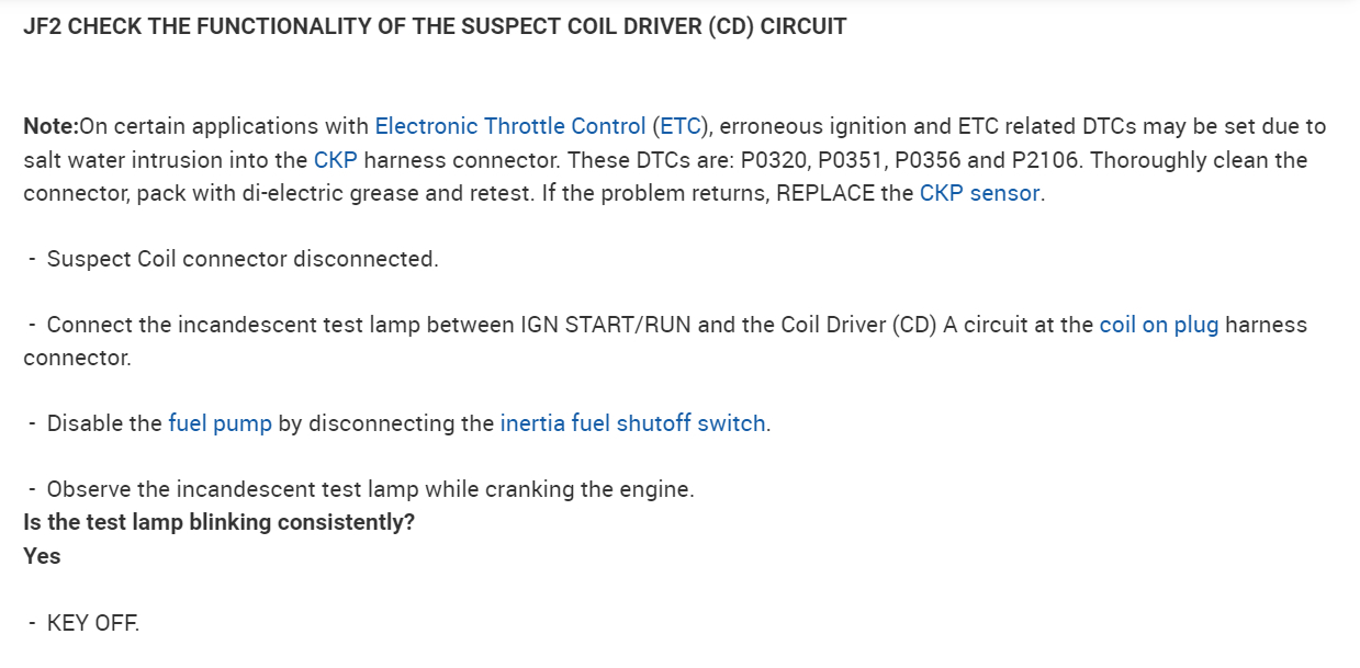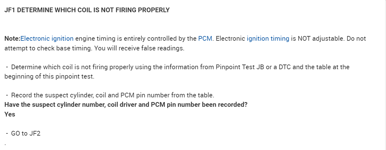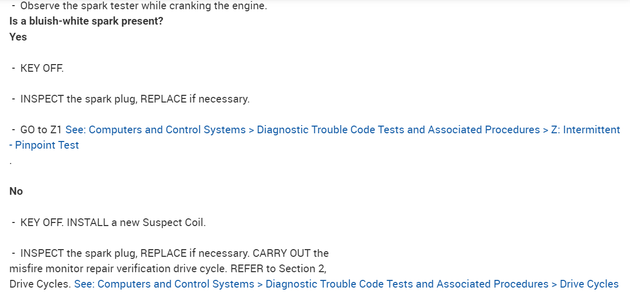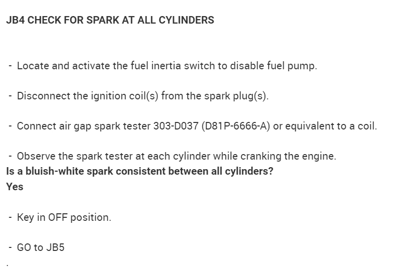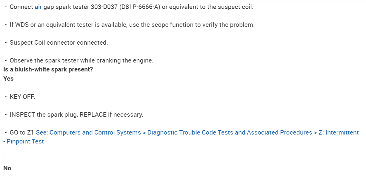 In the diagrams down below I have included for you the factory diagnostic troubleshooting flowcharts for your vehicle for Direct Trouble Code(s)(DTC)(s) P0351 and P0356. In the pinpoint tests they will have you test for spark, and here is a link below explaining how to do this if you don't have a spark tester: