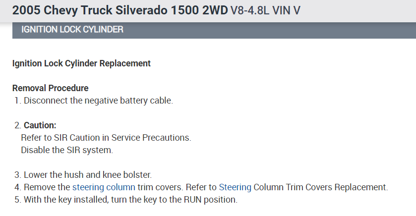 Since the vehicle is not driven much because the ignition key is stuck I need to replace it.