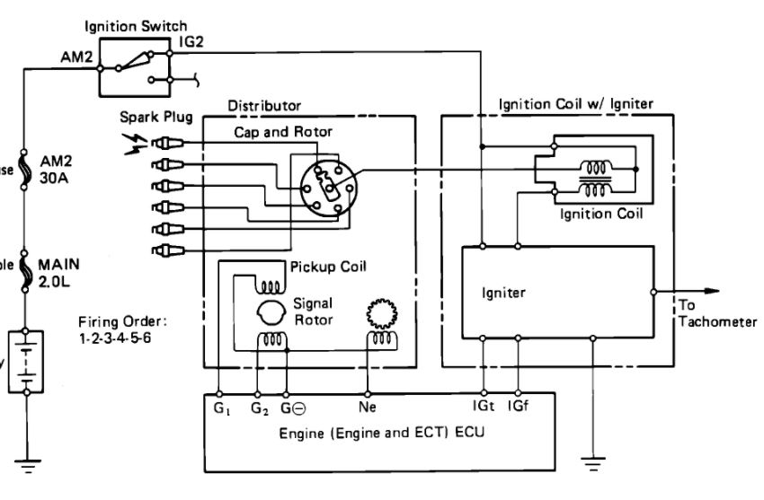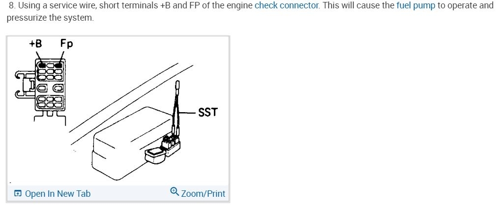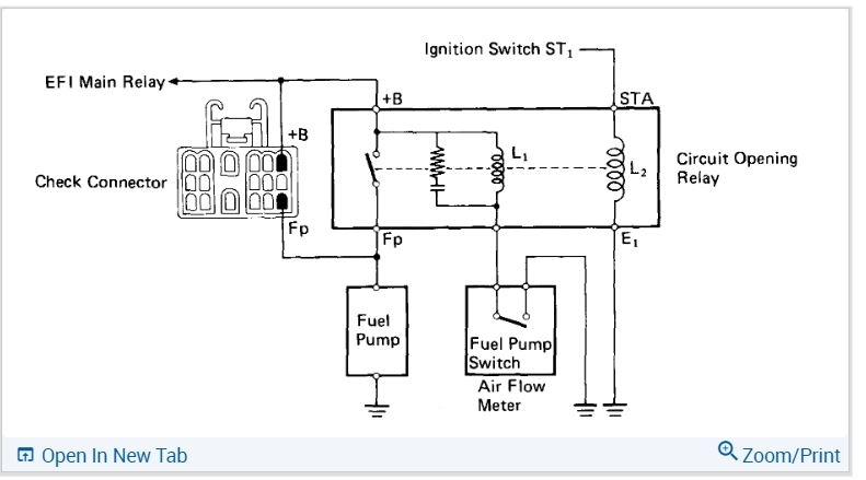 In this picture, it shows what terminals you can jump to activate the fuel pump, this can aid in checking for pressure. It also bypasses the Circuit Opening Relay, so you can rule that out as a problem. Power comes from the EFI relay next. Okay, so you're saying you have no injector pulse, this can be caused by a number of things. Such as no signal from from the pick up in the distributor, a wiring issue, a bad ECM. Lets see if you're getting any activity from the Injectors first.