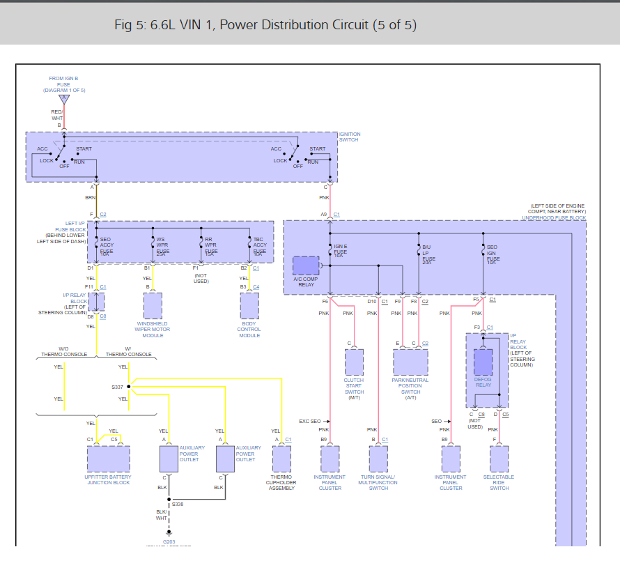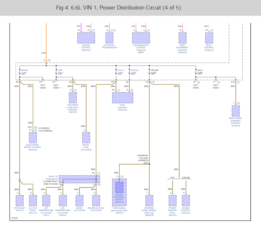 I have the truck listed above 2500hd Duramax. A mouse got into the fuse box and chewed up some wires. I have taped up everything showing any wire. Originally the truck wouldn't turn on or shut off with the key. I was able to get it to turn on with the key by fixing a wire going to the starter relay that was chewed completely through. I'm still having a problem with the key not turning the truck off. I have been resorting to pulling one of the relays to shut it down. My question is, what fuse/wire should I be looking at that signals the truck to shut off?