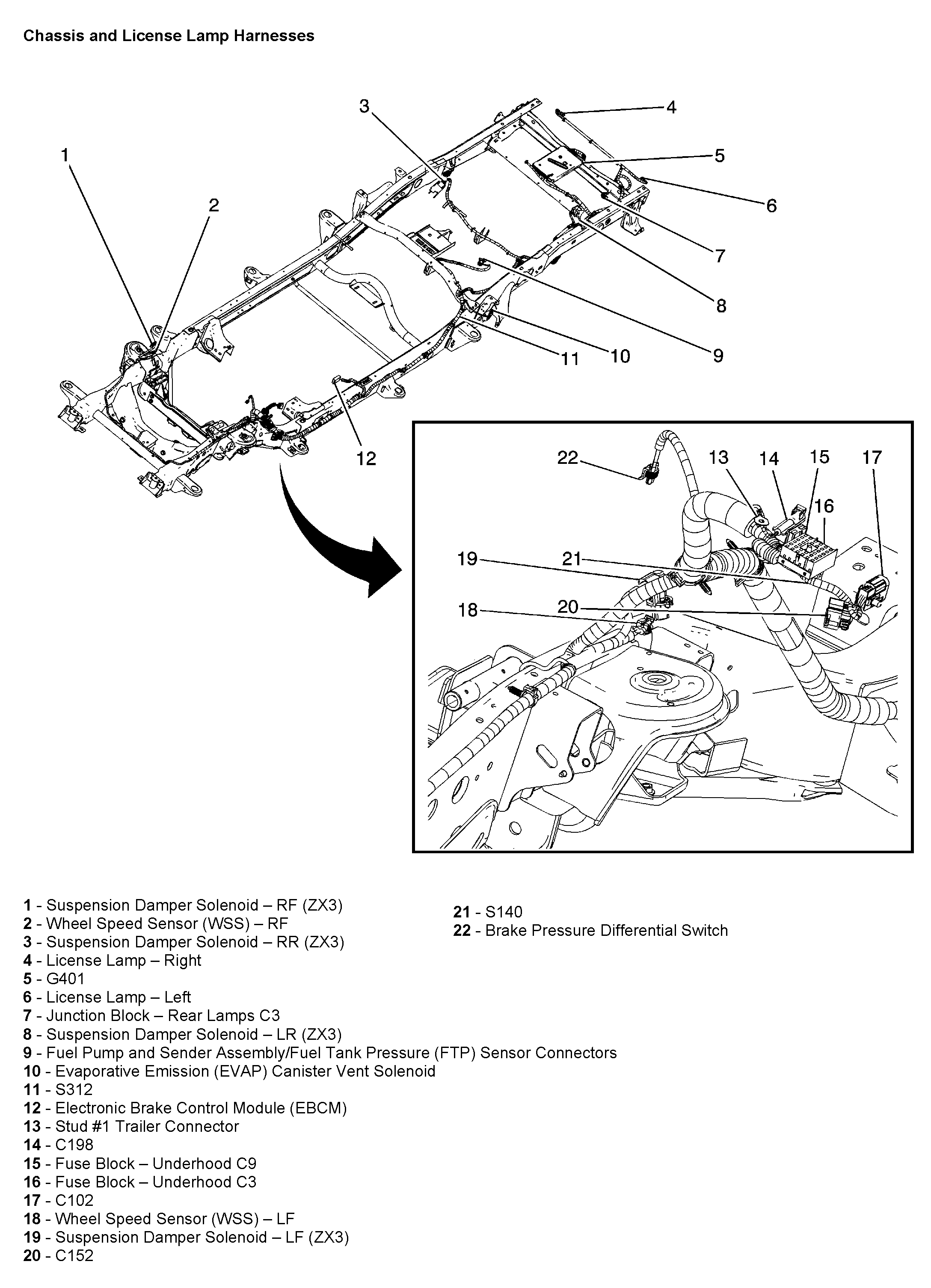 IMPORTANT: On vehicles equipped with a 8 ft box, the CVS line is routed below the frame crossmember.