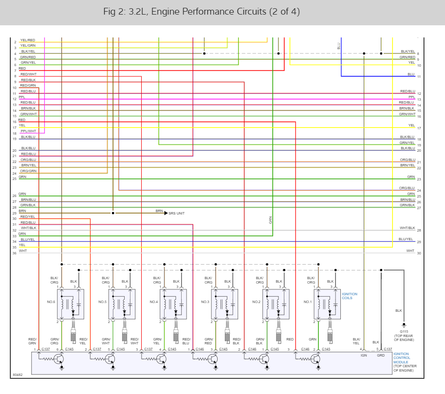 It should go to any of the coil trigger wires ( green, green/white etc). here is a coil wiring diagrams so you can see what I am talking about. be sure to switch the tach to COP mode. Check out the diagrams (below). Please let us know if you need anything else to get the problem fixed.