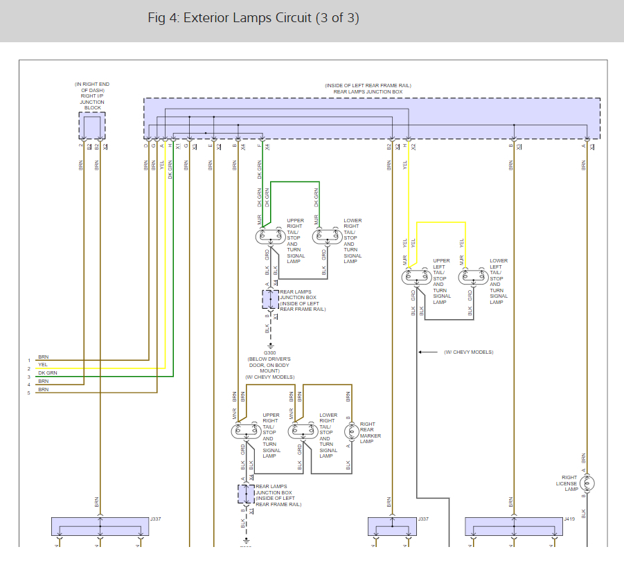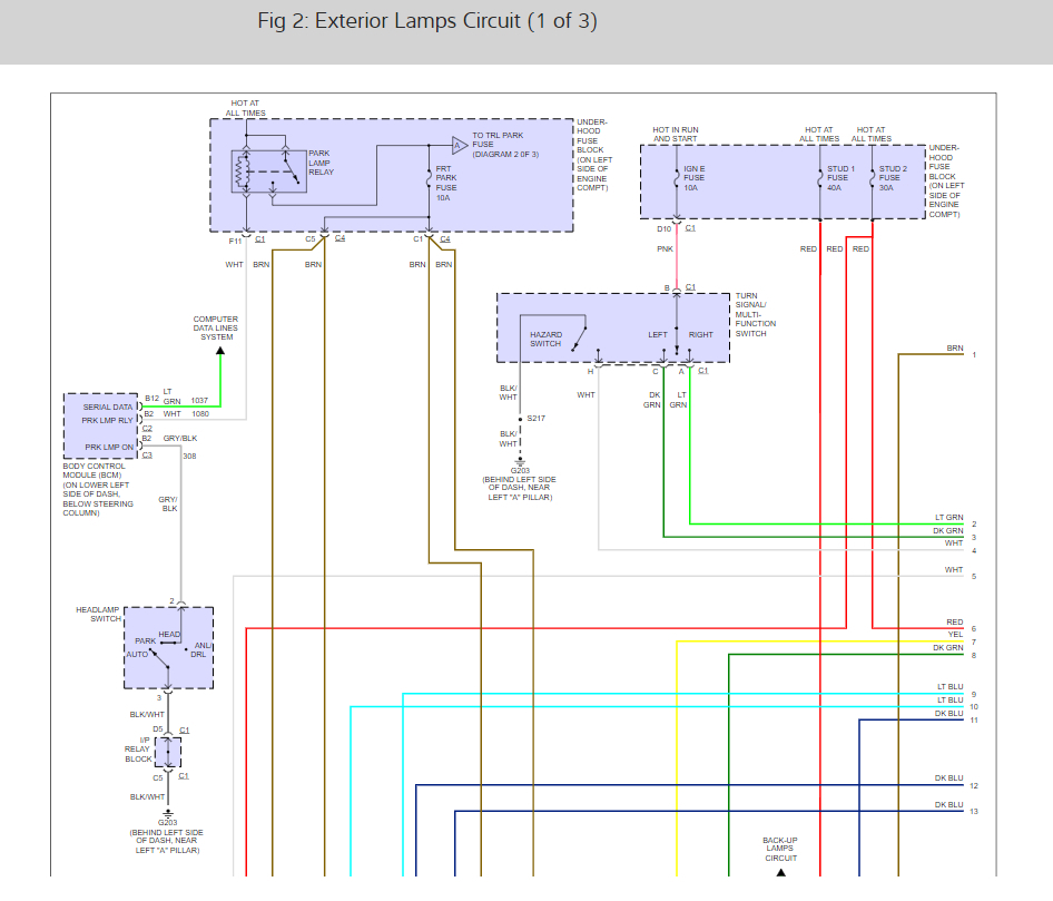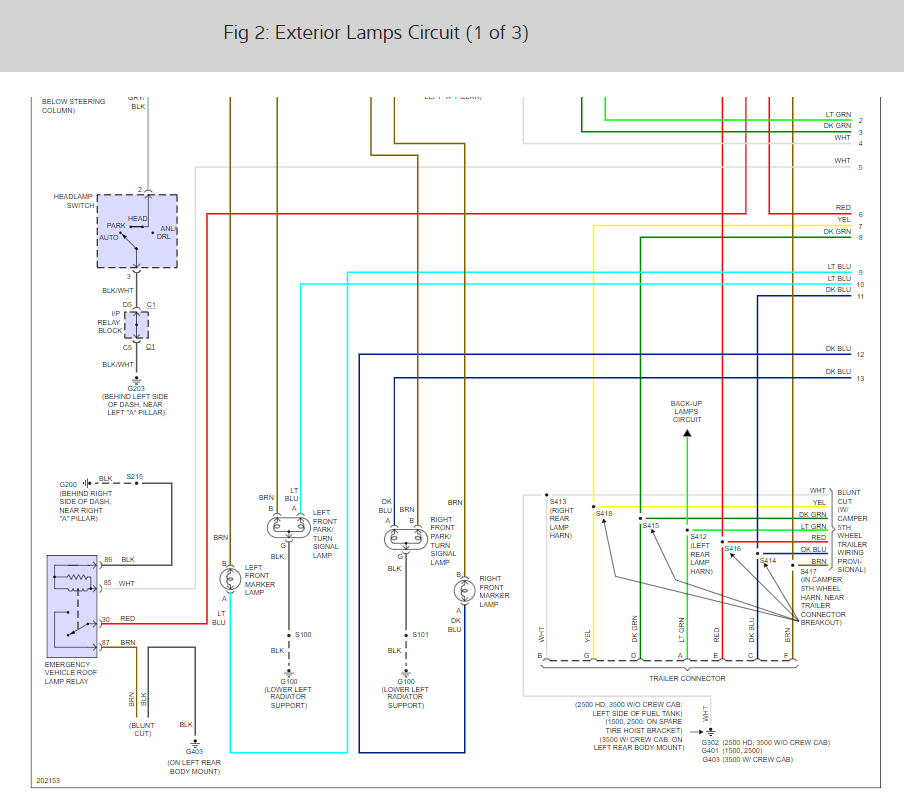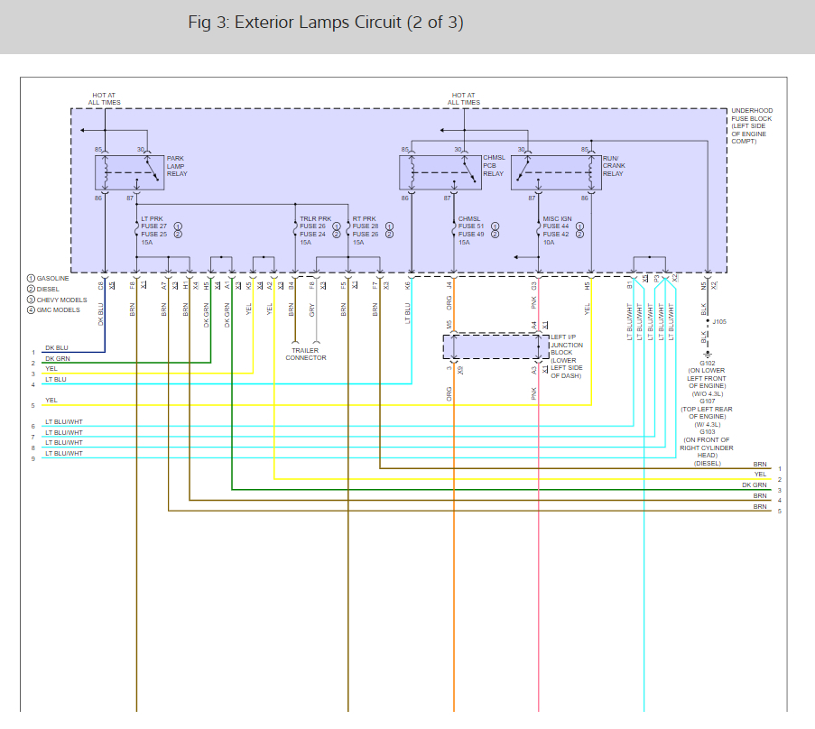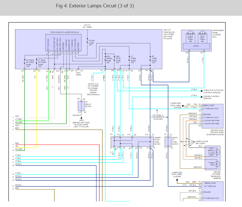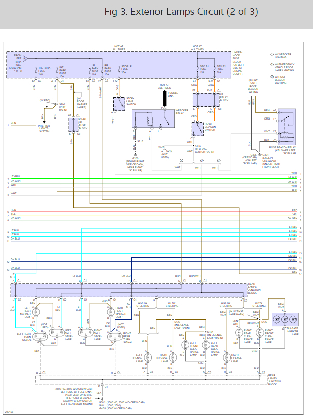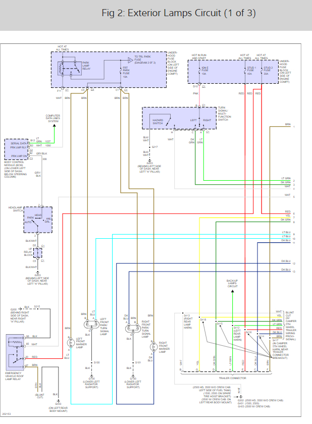 I just wanted to provide you the wiring diagrams so you can check wires and make sure you got the correct fuses. The reason I say that is that the wiring layout for the triler lights on this truck are confusing and use there own circuit fuses as well as some of the trucks light system fuses.