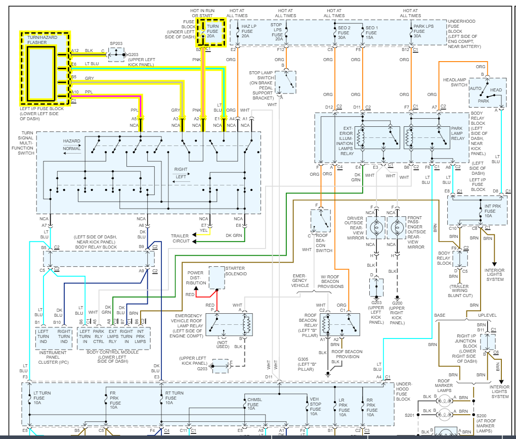 I attached the supply for the turn signals for you to view. Check the fuse I circled for power on both sides.