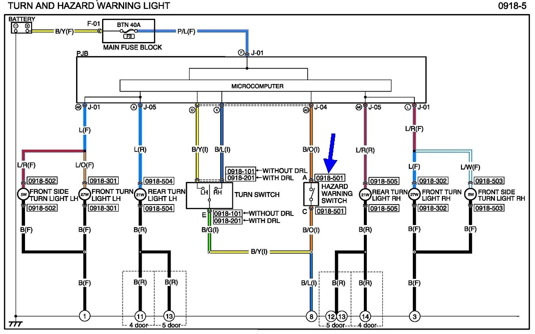 There must be a hazard flasher system. I found the switch on these diagrams, (blue arrow and circle).