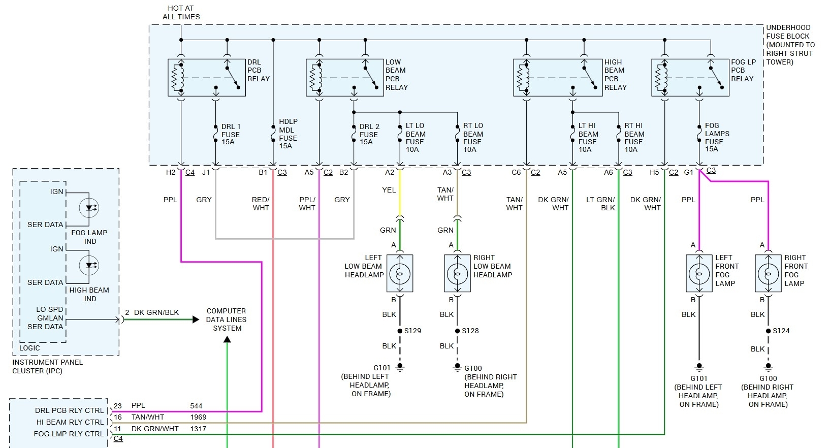 Can you send me a diagram of how to hook my lights up witch colors goes to which? because I got the passenger side single blinking normal with the headlights on but not the driver side.