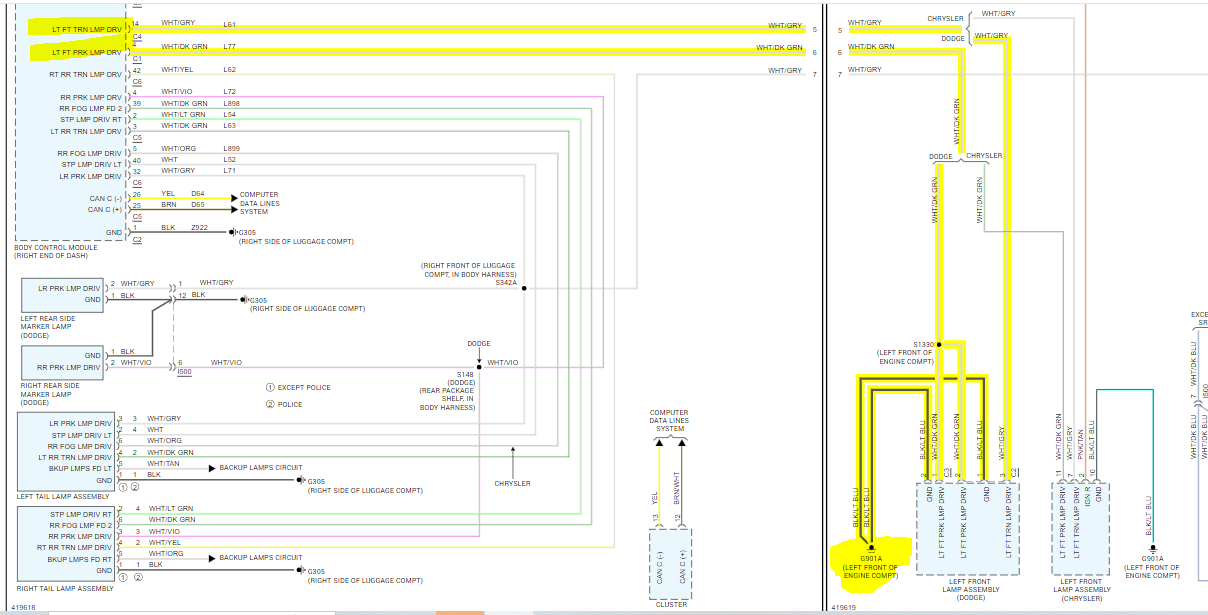 3 wires on the front turn signals. 1 black wire with a blue stripe, 2 white wires on has a green stripe and one has a black stripe. Which one is ground, positive, and negative?
