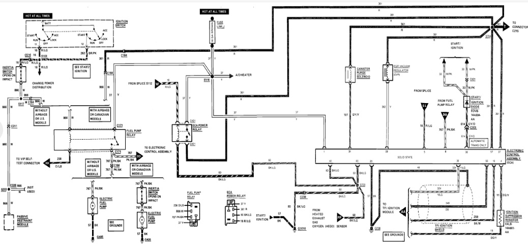 Rather than pick through these diagrams and drawings, I just posted everything I found that might be useful. I found there is no separate fuse for the fuel pump. They used a fuse link wire which acts like a slow-blow fuse. Also, it feeds a lot of other stuff including the ignition system. We know that is okay since the engine runs on starter fluid.