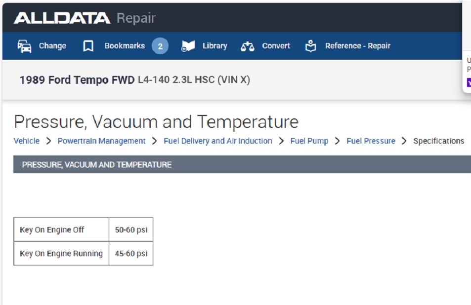 If you don't have a fuel pressure gauge, rather than buy one you'll never use again, you can borrow one from most auto parts stores. In my city, they make you buy the tool, then you get a full refund when you return it. If you decide to keep one, you still return it, then they give or order you a brand new one.