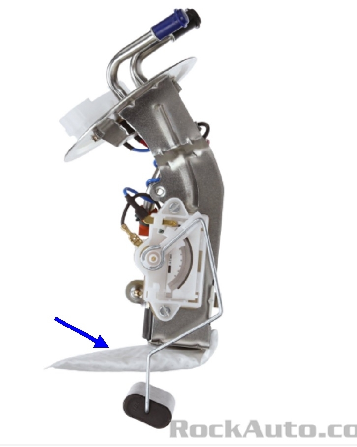 I found the pickup screen, called a "strainer" in this case, is available separately on Rock Auto for as little as a dollar. My arrow in the photo is pointing to it. You can get just the pump too, but the pump in the housing is a really good value for your model, and is very inexpensive. If you need to replace the pump, inspect the metal nipples the hoses connect to. Those often rust out leading to leaks. Also inspect the tank for debris floating around. Besides what you can physically see, it's microscopic debris that plugs the screens. Other manufacturers have service bulletins describing the need to take the tank to a radiator repair shop to be steam cleaned, but we seldom actually do that. This is more related to years ago when we had different additives in gasoline and mold would grow and feed on the alcohol in the gas. There were many stories of people replacing four, five, or six pumps, each one failing after a few weeks. It was due to that debris clogging the impellers. By the time they got frustrated and bought an original part from the dealer, all the debris had been "collected", then that new pump lasted forever. In fact there was nothing wrong with the quality of the aftermarket pumps. All of that frustration was avoided when the tank was steam cleaned right away.