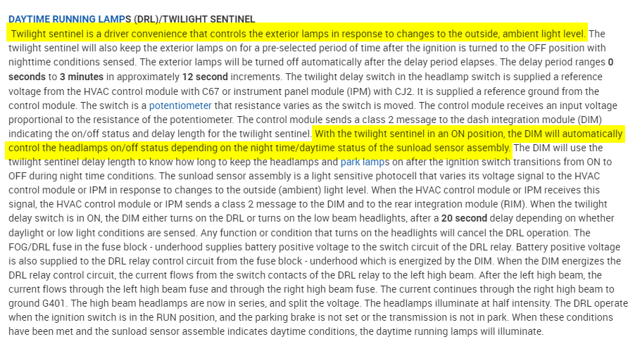 all my outside lights come on when i start the car day or night, and turn off when i turn the key off. turned twilight sentinel back on and the same thing happens. would that be the headlight switch in the dash or the sensor on top of the dash ?