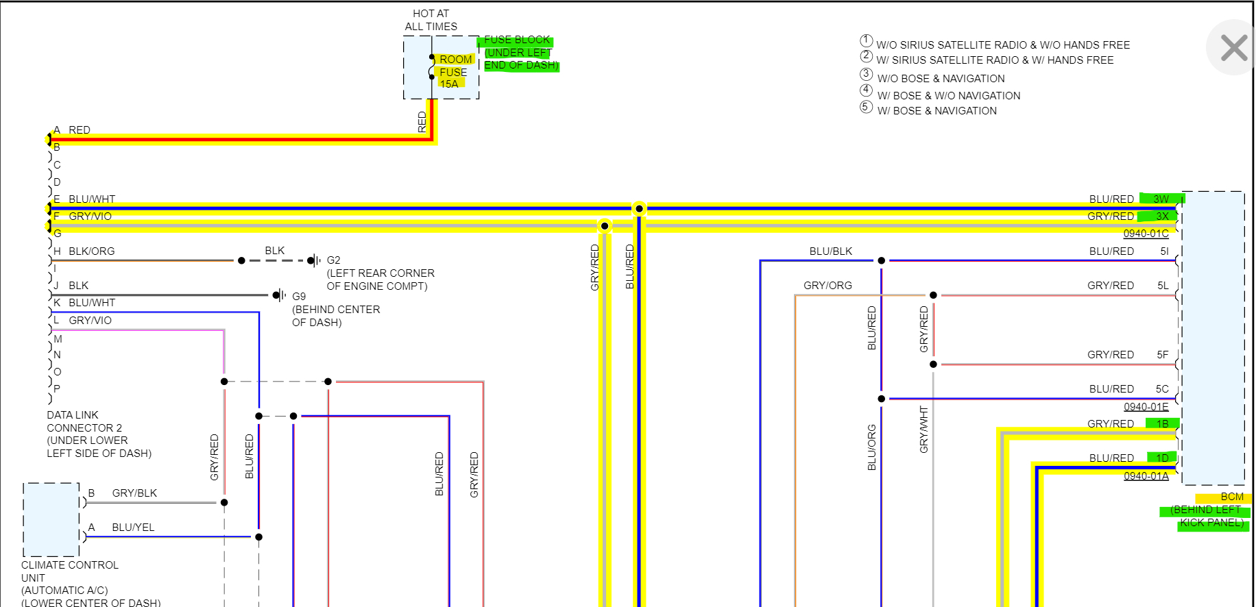Ok after looking through all the wiring diagrams, there are some other possibilities here.