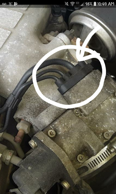 The part is circled now and you can see the wire or hose that's missing. I have no idea if it's a hose or a wire, sorry. All I know is it controls the air flow somehow. When I stop at a light or stop sign it stalls. This same thing happened with my other Buick and it was an air flow problem. The issue didn't happen with this car until this piece was accidentally broken off while changing the battery. Thank you for your reply! I'm trying to sell the car now and just need this piece, but don't know the name of it.