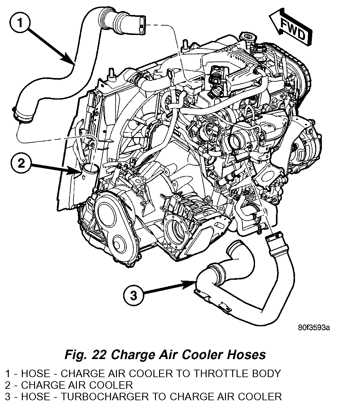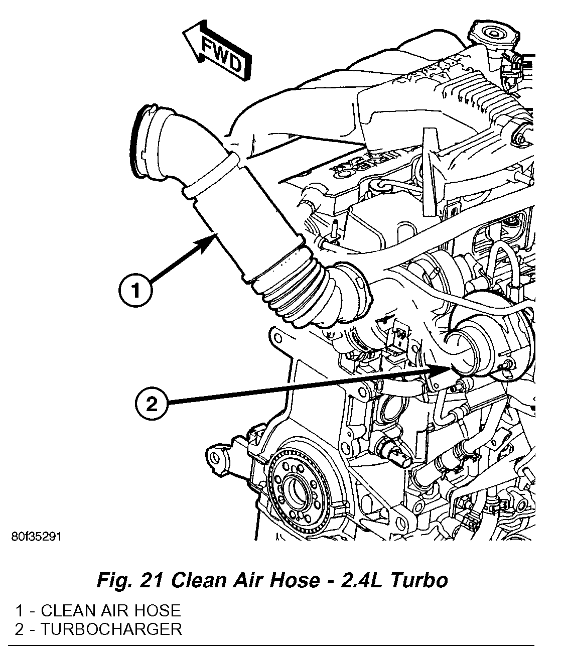 4. Disconnect clean air hose from turbocharger (Fig. 21).