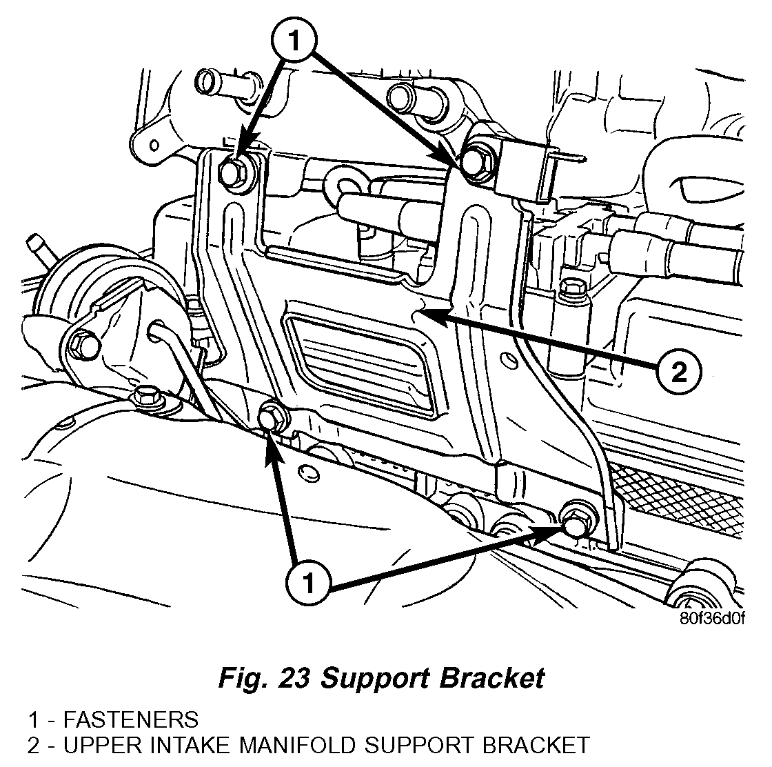21. Install upper intake manifold sup port bracket (Fig. 23).