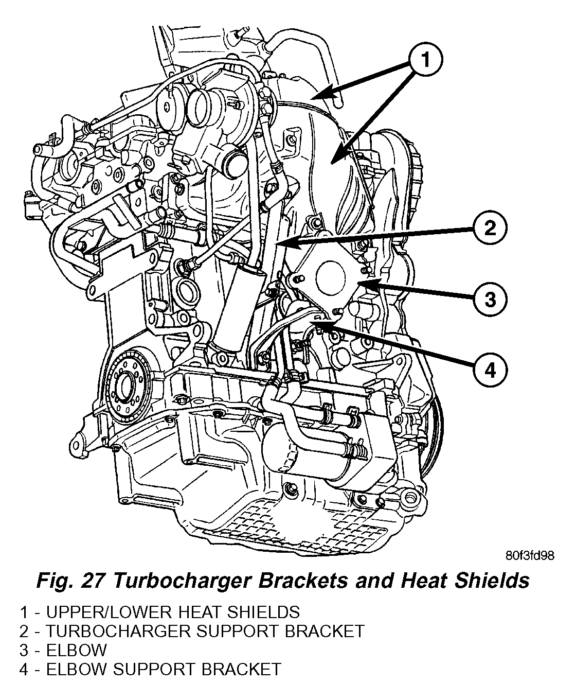 25. Remove turbocharger lower heat shield (Fig. 27).