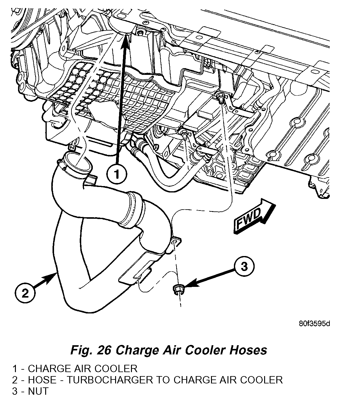 20. Remove turbocharger to charge air cooler hose assembly (Fig. 26).