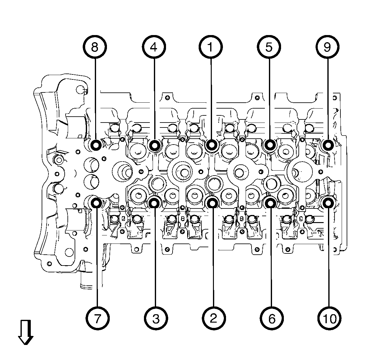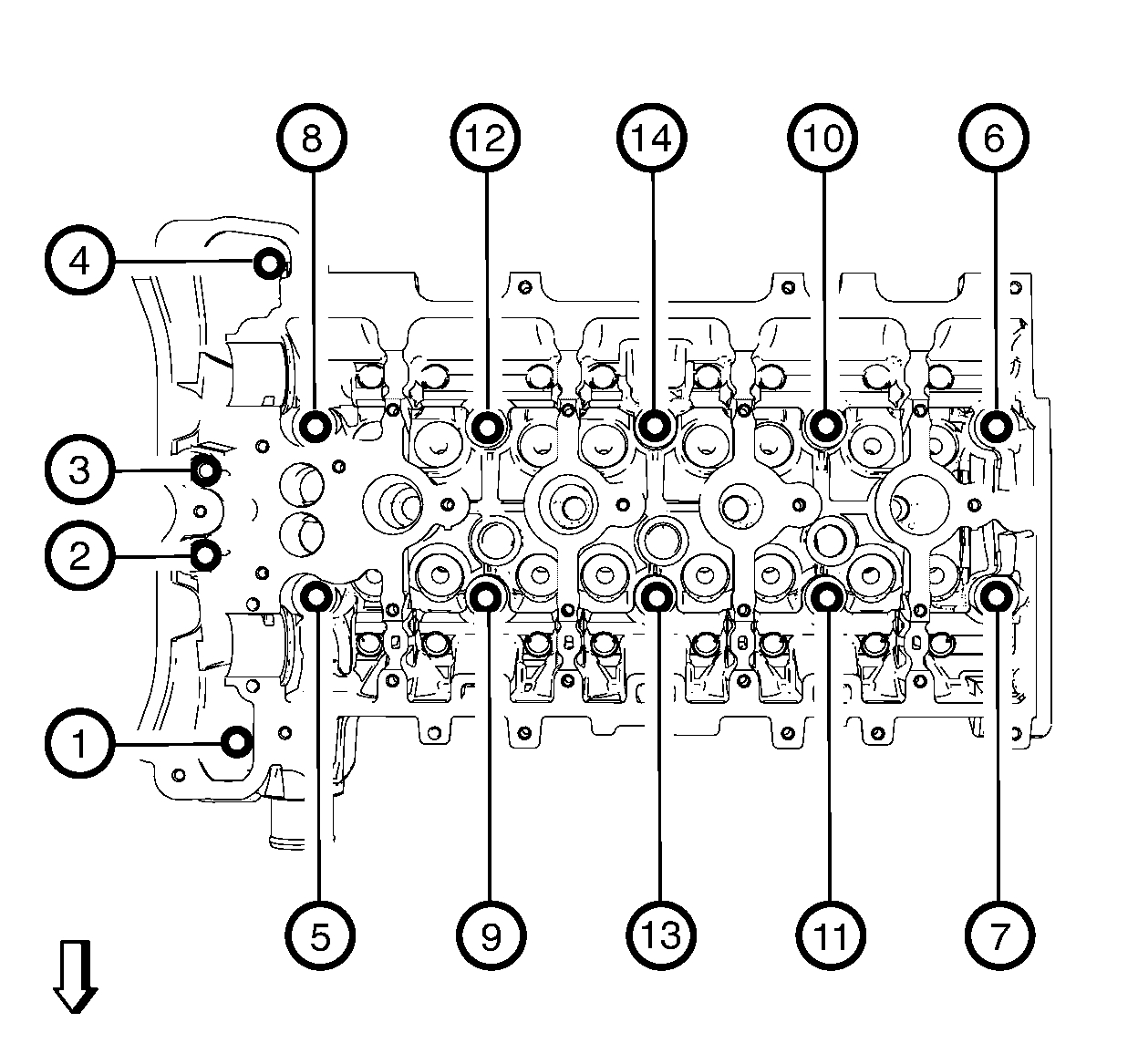 4. Tighten the NEW cylinder head bolts a first pass in the sequence as shown to 30 Nm (22 lb ft).