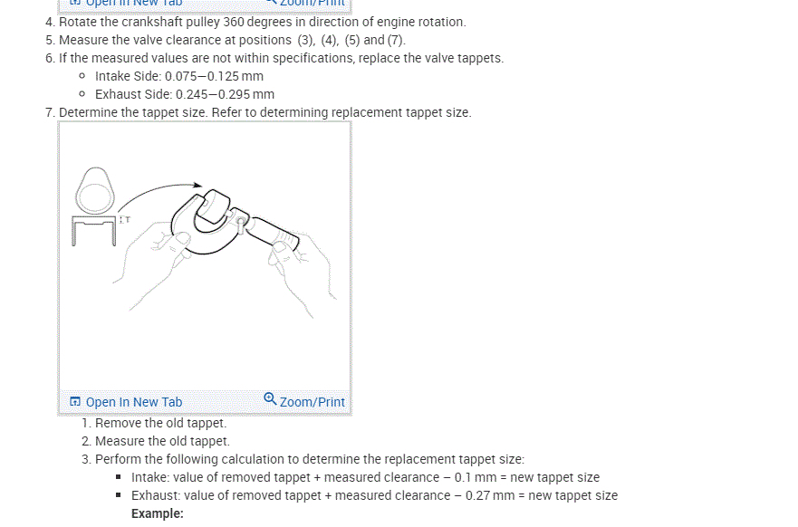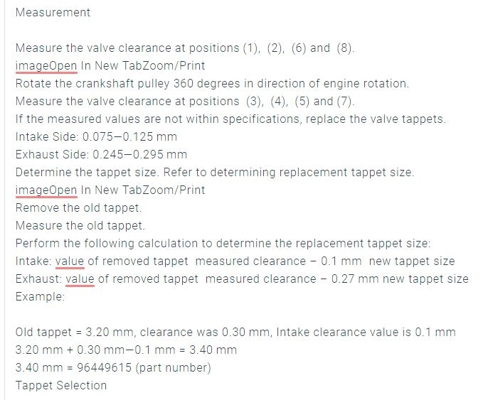 Hi, could you please provide me with the valve clearance with step by step instruction?