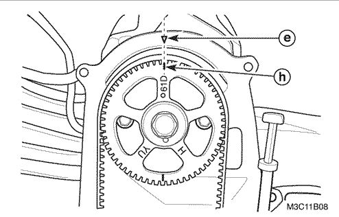 Then rotate the crankshaft one rotation and bring cylinder 1 to top dead center on the exhaust stroke as in image 2