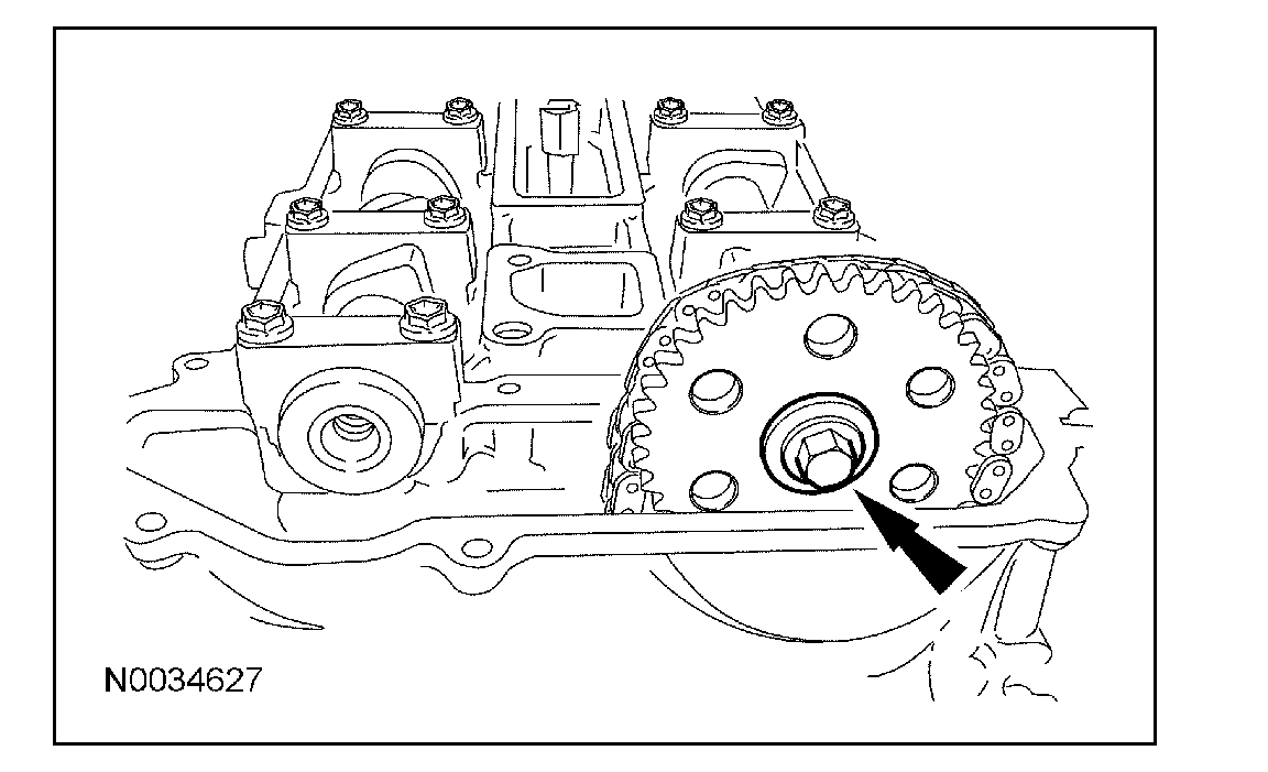 5. NOTE: The timing chain must be correctly engaged on the teeth of the crankshaft timing sprocket and the intake camshaft drive gear in order to install the exhaust camshaft drive gear onto the exhaust camshaft.