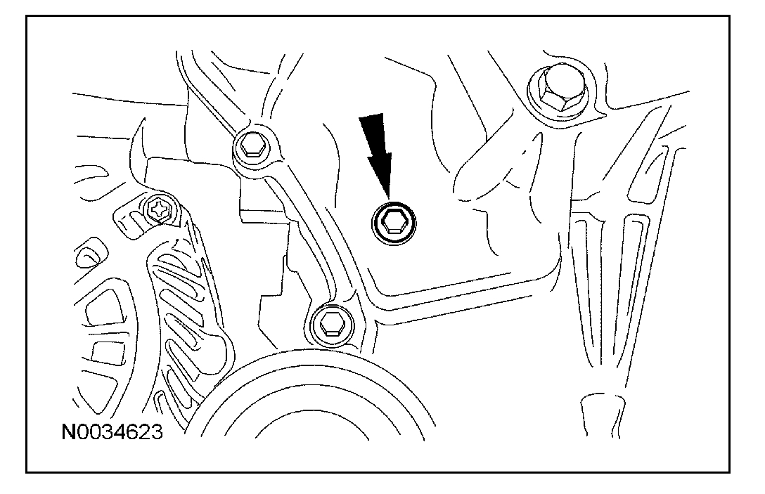 12. Remove the front cover upper timing hole plug from the engine front cover.