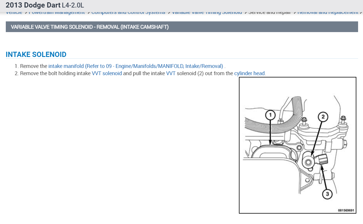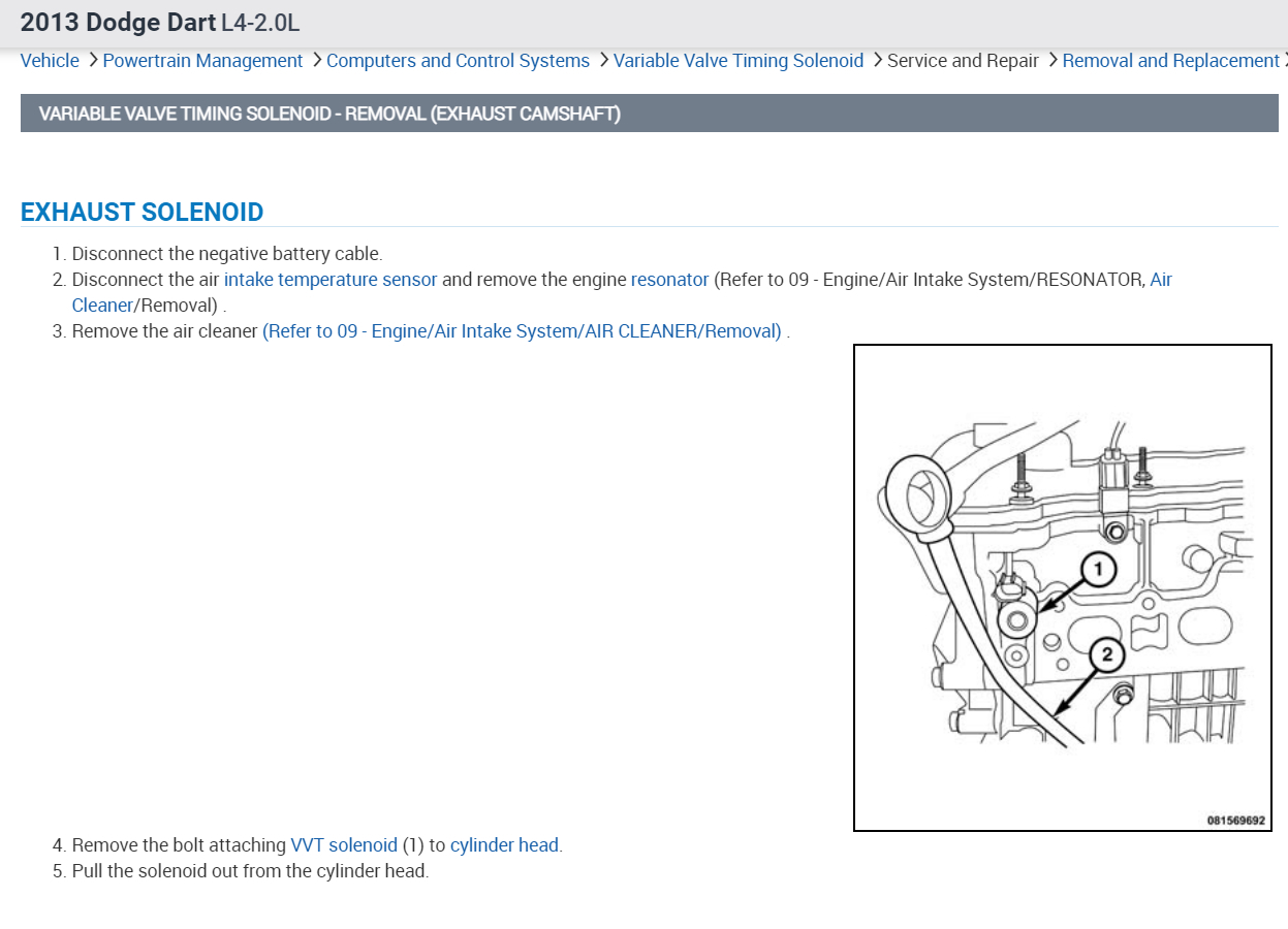 Can't seam where to find the location of the variable valve timing solenoid. Just need some guidance.