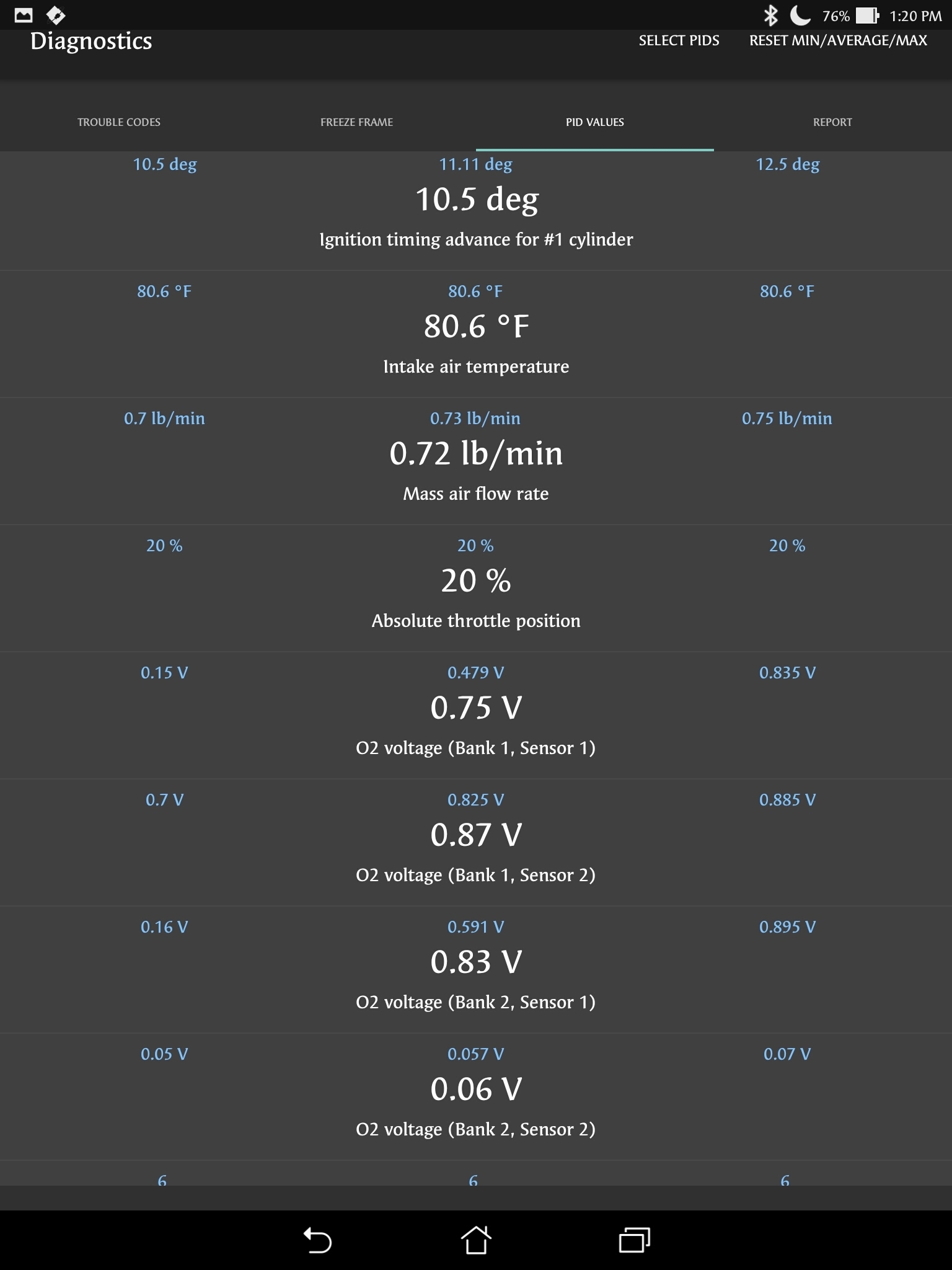 This vehicle does not raise or hesitate before it raise, I have diagnosed it after certain distance drive but it is not record any fault code. I have used live data to view of a particular sensor is out operating threshold but could not see except Absolute Throttle Position that reads:20%,(I attached the picture below). At this point I am confused what could be problem, any suggestions would be appreciated.