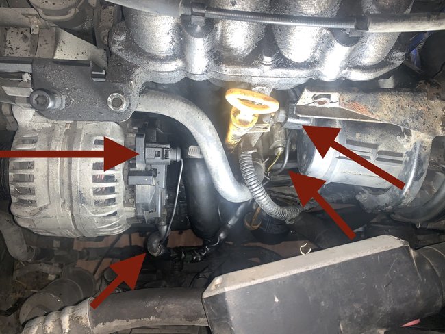 I removed the alternator wiring and a few other electrical connections to repair a leak.