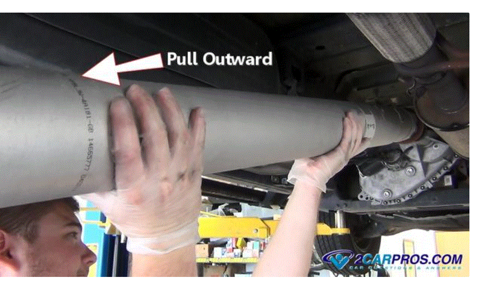 14. Remove exhaust bracket from transfer case (two 12 mm bolts).
