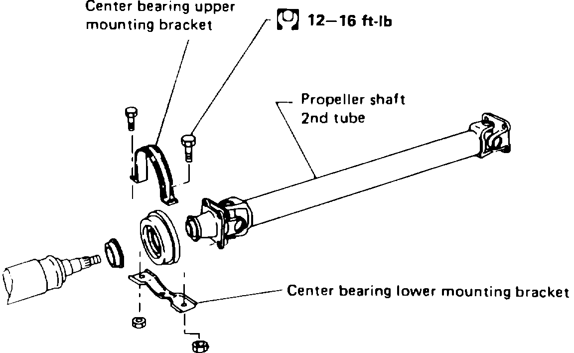 7. THIS STEP IS FOR LONG WHEELBASE VEHICLES ONLY. Remove the two propeller shaft center bearing bracket bolts (17 mm) (Figure 2).