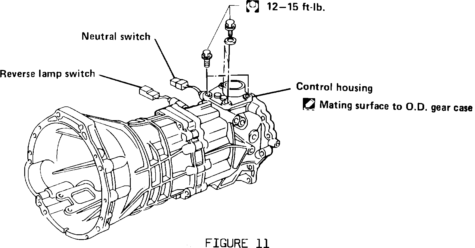 20. Using an open end wrench, remove the two (13 mm) and two (12 mm) bolts from the shifter control housing (Figure 11). Loosen the control housing from the transmission.