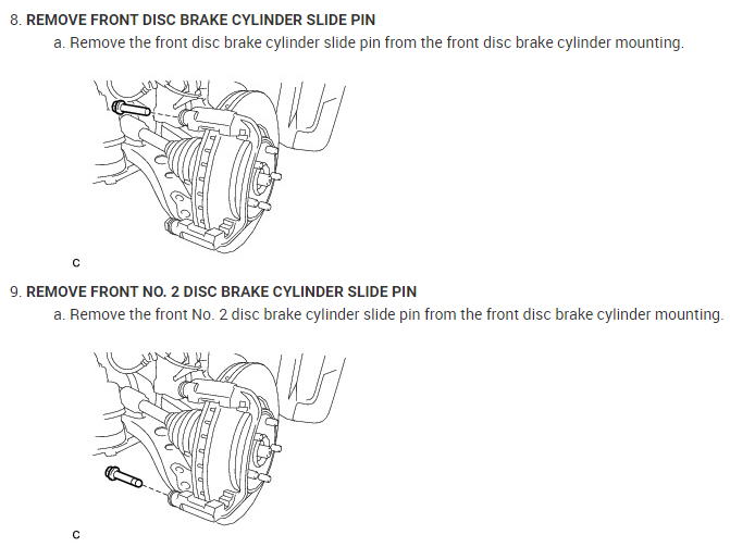 REMOVE FRONT NO. 2 DISC BRAKE CYLINDER SLIDE PIN