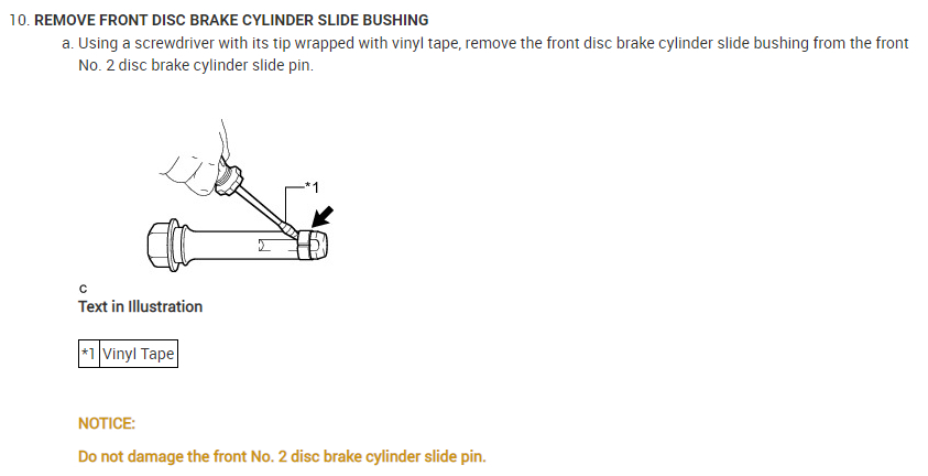 Do not damage the front No. 2 disc brake cylinder slide pin.