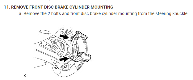 REMOVE FRONT DISC BRAKE CYLINDER MOUNTING