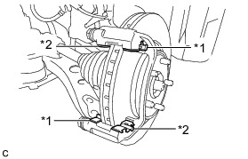 Remove the front No. 2 disc brake cylinder slide pin from the front disc brake cylinder mounting.