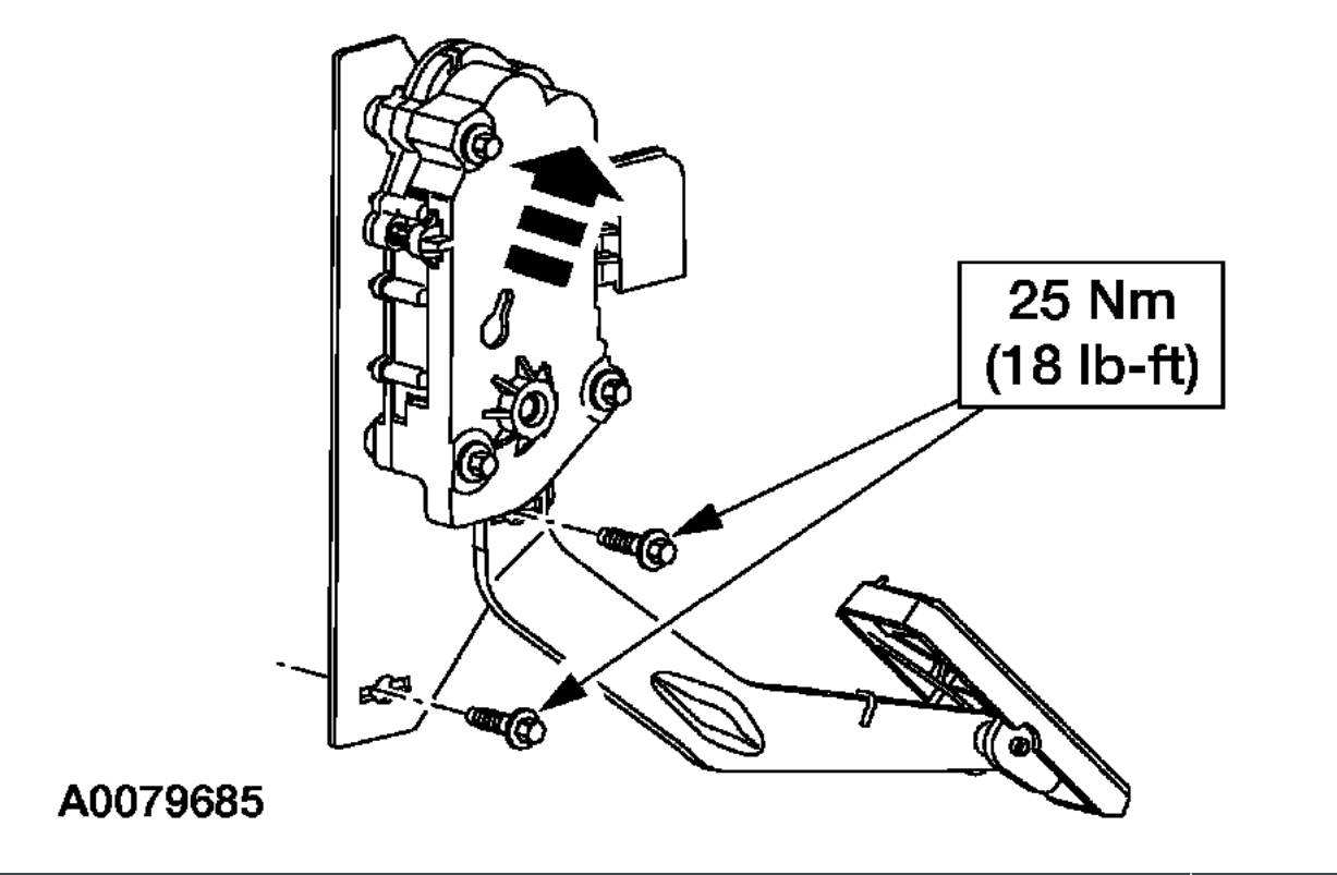 2. Remove the two bolts and slide the accelerator pedal and sensor assembly up and off the anchor bolt.