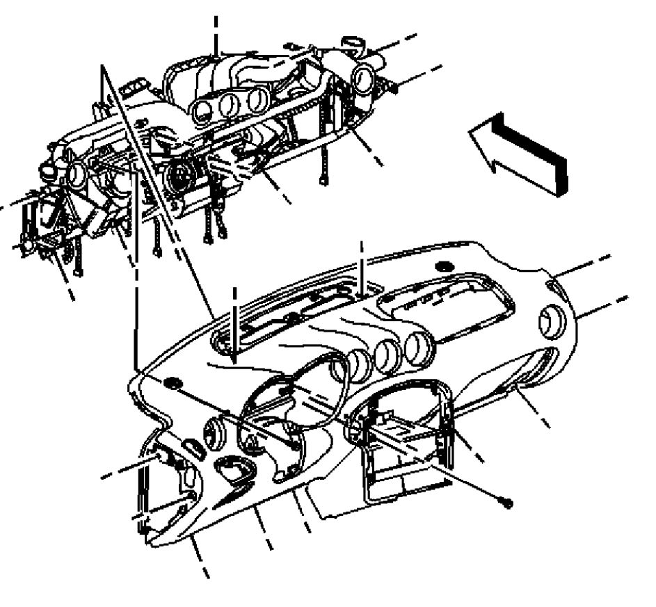 24. Remove the screws connecting the instrument panel to the cross car beam.