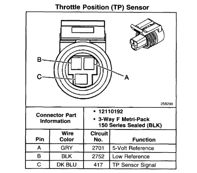 I check the TPS connector with the connector unplugged with a DMM and got to read about 1.6V on the signal leg (dark blue B con. #66)