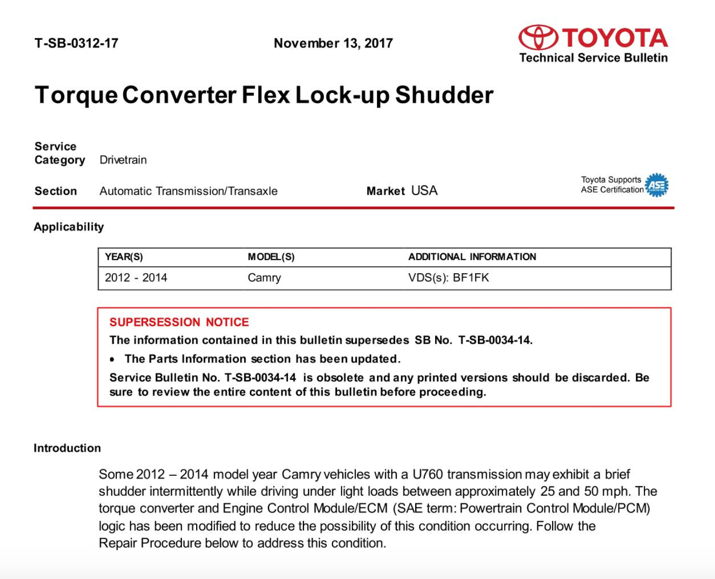 It looks like you may be out of power-train warranty but i would still say it would be worth contacting a Toyota dealer to see if the TSB is applicable. If it is applicable you may be able to get Toyota to cover it as it is a known issue.