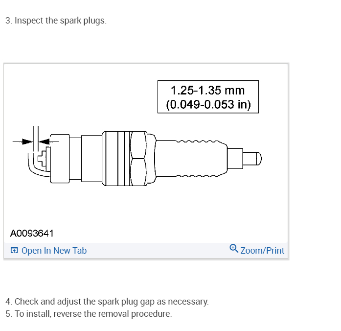 Gap - 1.25 - 1.35 mm (0.049 - 0.053 in)