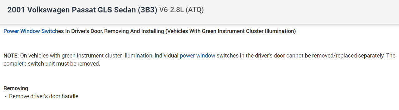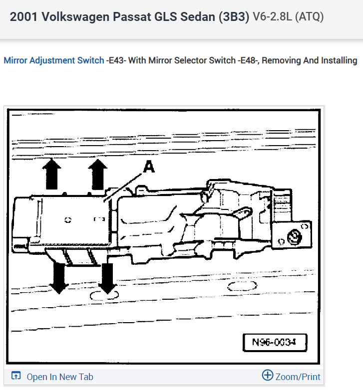 How do I replace the power mirror switch on a 2001 late model passat?
