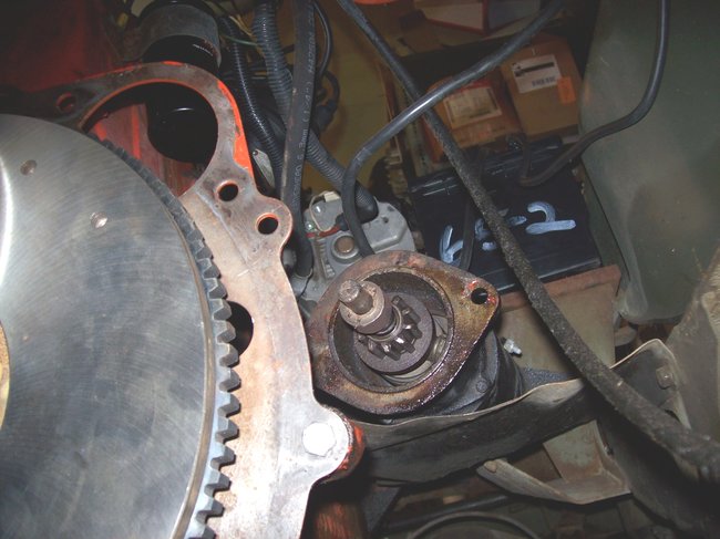 THE SAME ARM SIMULTANEOUSLY "LEVERS" THE STARTER DRIVE INTO THE FLYWHEEL TEETH??? WHEN YOU LET UP WITH YOUR FOOT, POWER DIES AND THE STARTER DRIVE RETRACTS BACK INTO THE STARTER